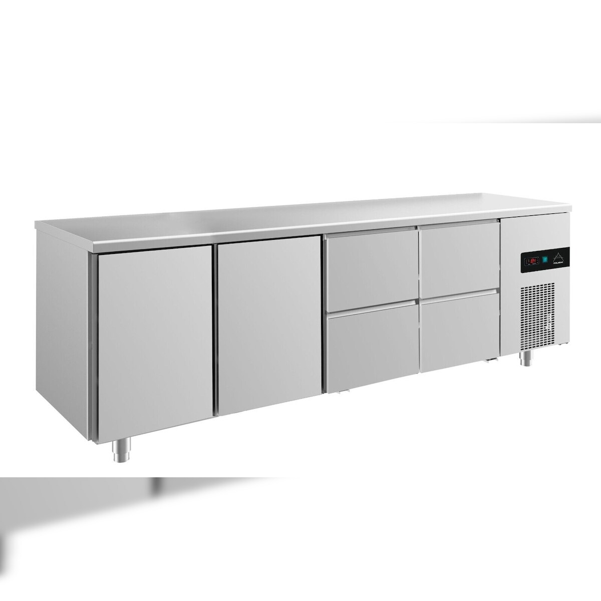 A&S polarny Gastro Kühltisch 2 Türen 4 Schubladen Umluftkühlung 2330x700x850mm -2/+8°C 632l