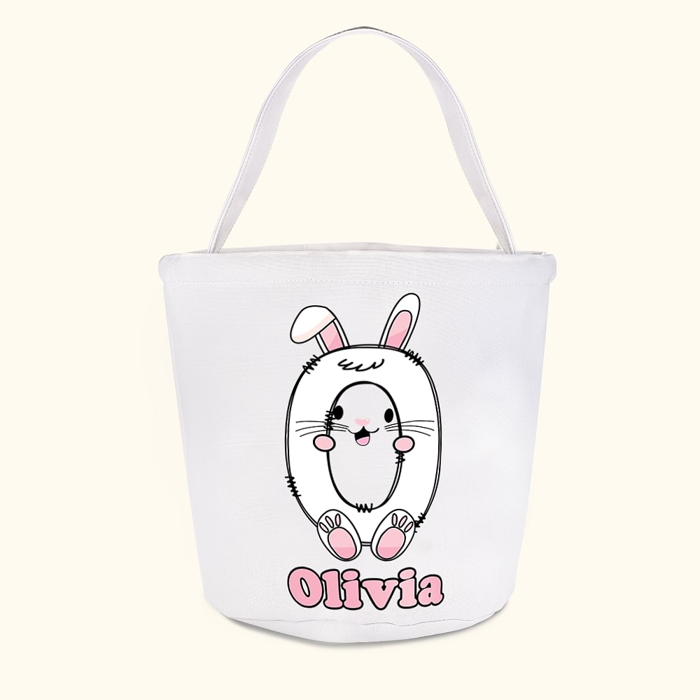 Sac en Toile Personnalisé avec Nom et Initiale Design Lapin et Poussin Cadeau de Pâques pour Famille Amis