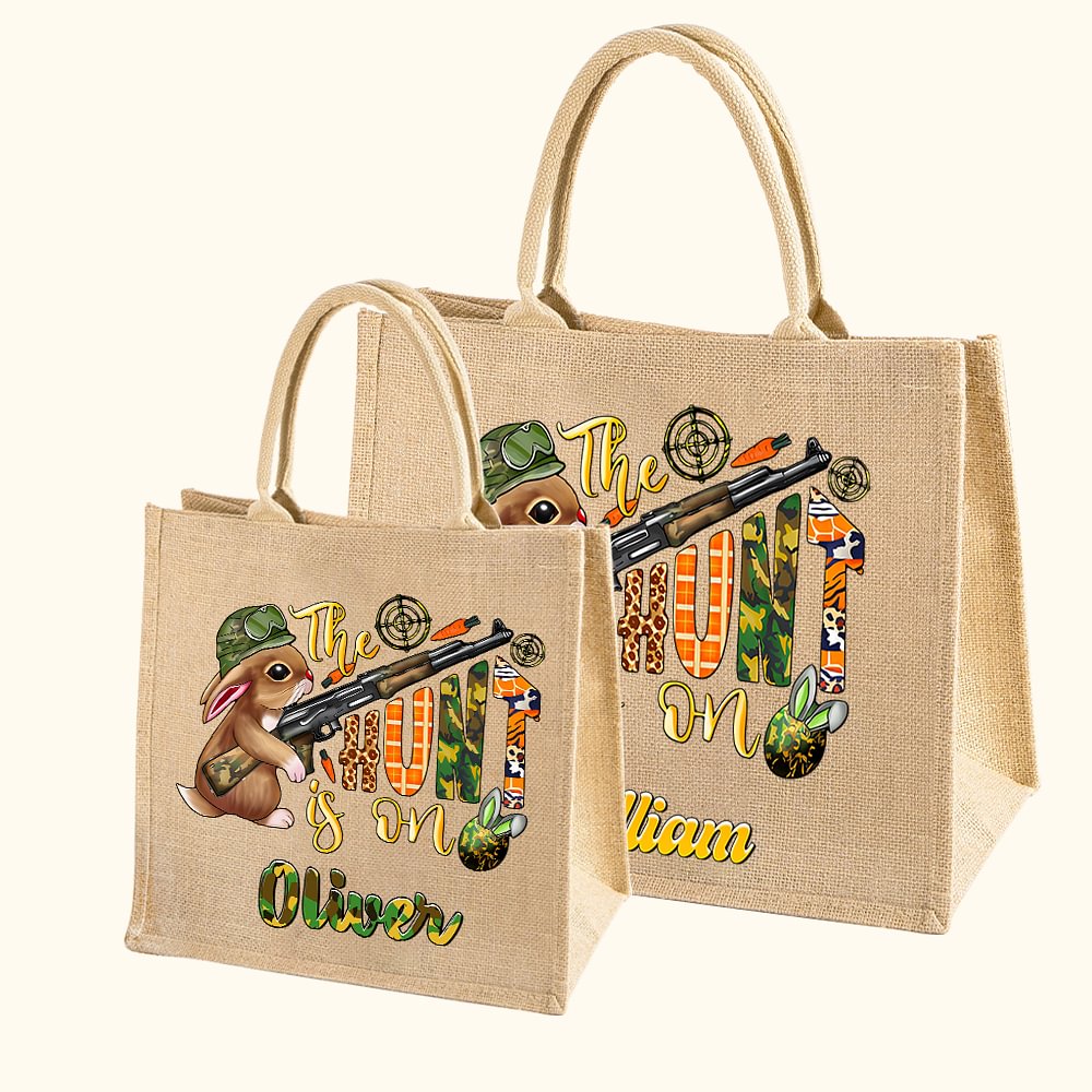 Sac à Main en Toile de Jute Personnalisé avec Nom Motif Lapin Camouflage Cadeau de Pâques pour Enfant