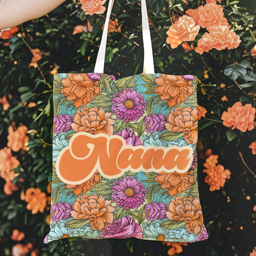 Sac à Épaule en Toile Personnalisé avec Nom Surnom et 1 à 4 Fleurs de Naissance Cadeau Anniversaire Noël pour Maman et Grand-mère