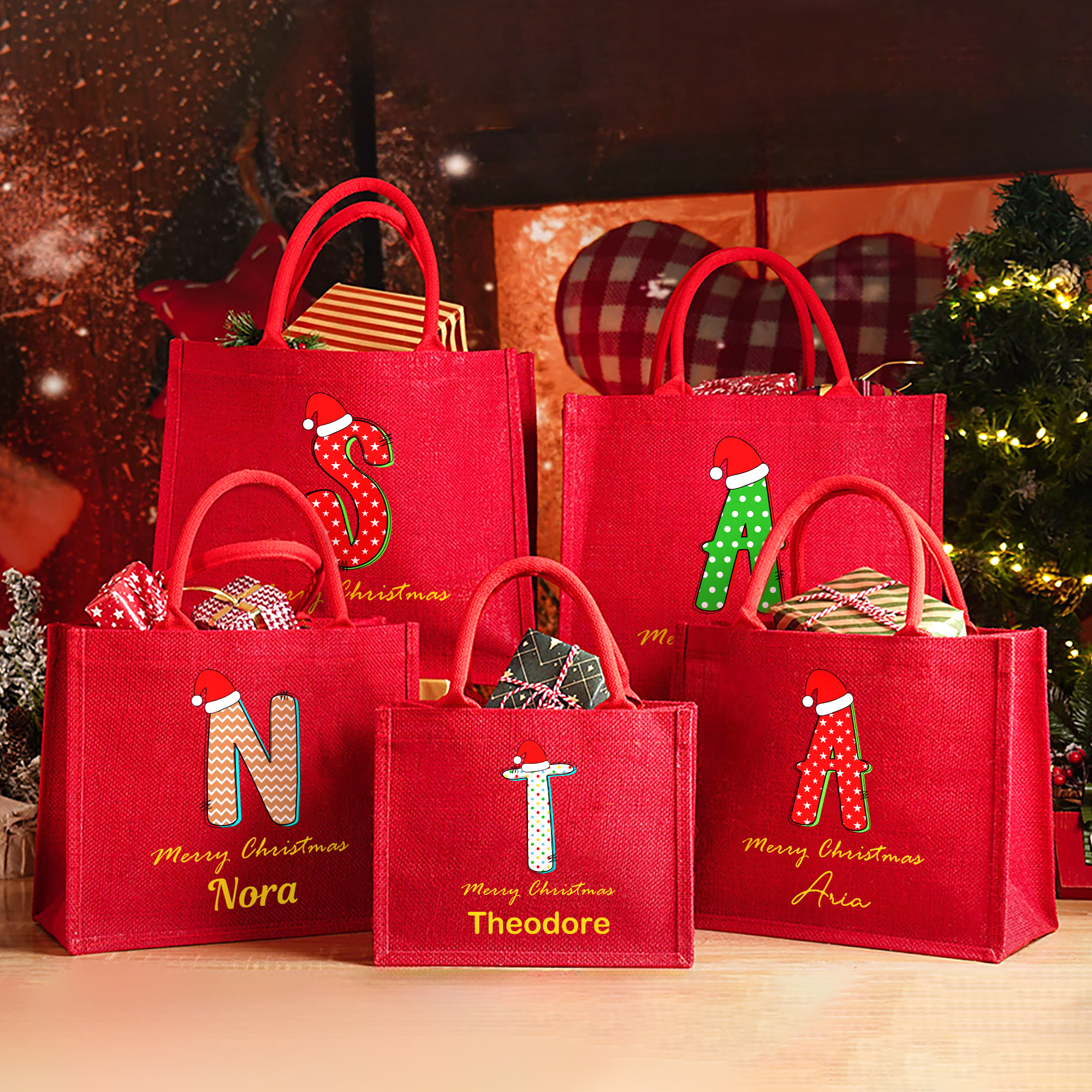 Sac en toile de jute avec nom Cadeau de Noël pour les enfants, la famille et les amis