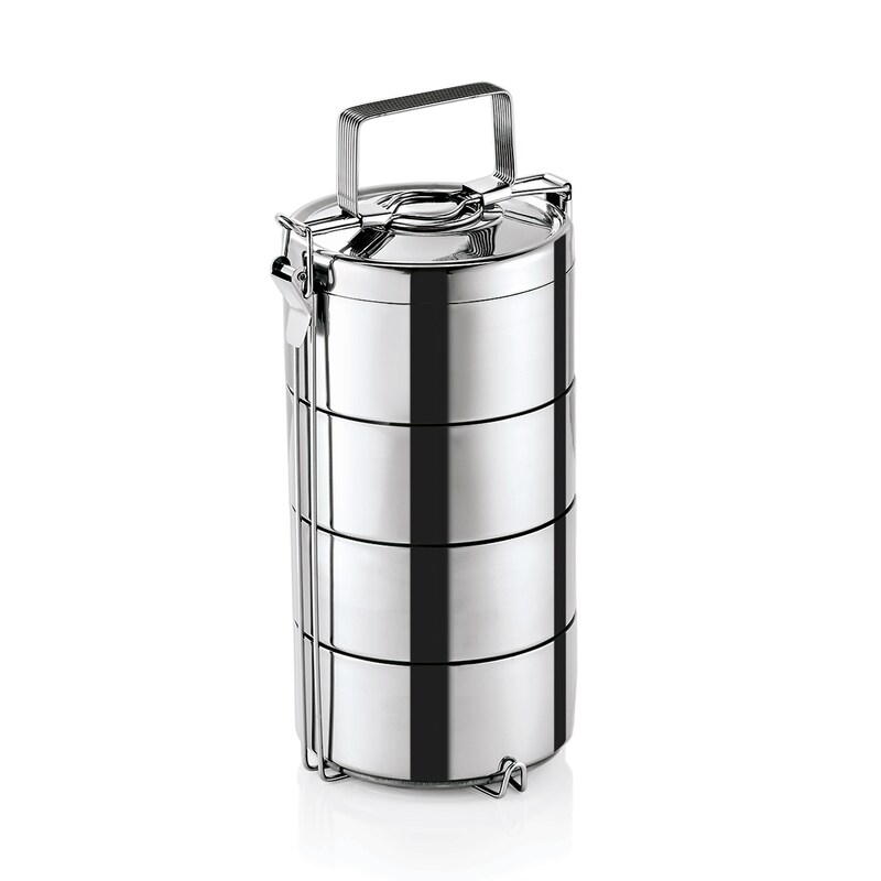 WAS Germany 4x Thermoetagentransportbehälter mit 4 Speiseeinsätze à 0,9 Liter, Ø 16 cm, Edelstahl