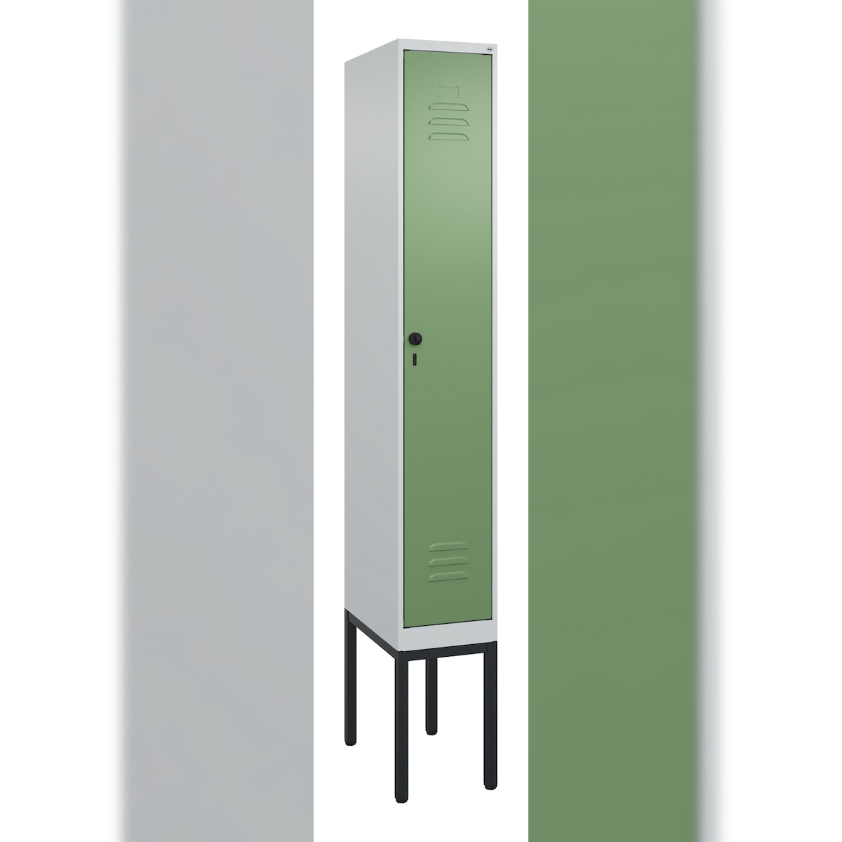 C+P Spind Classic PLUS, Gestell, 1 Abteil, HxBxT 212x30x50cm, Sicherheitsdrehriegel, Hellgrau/Resedagrün von PROREGAL