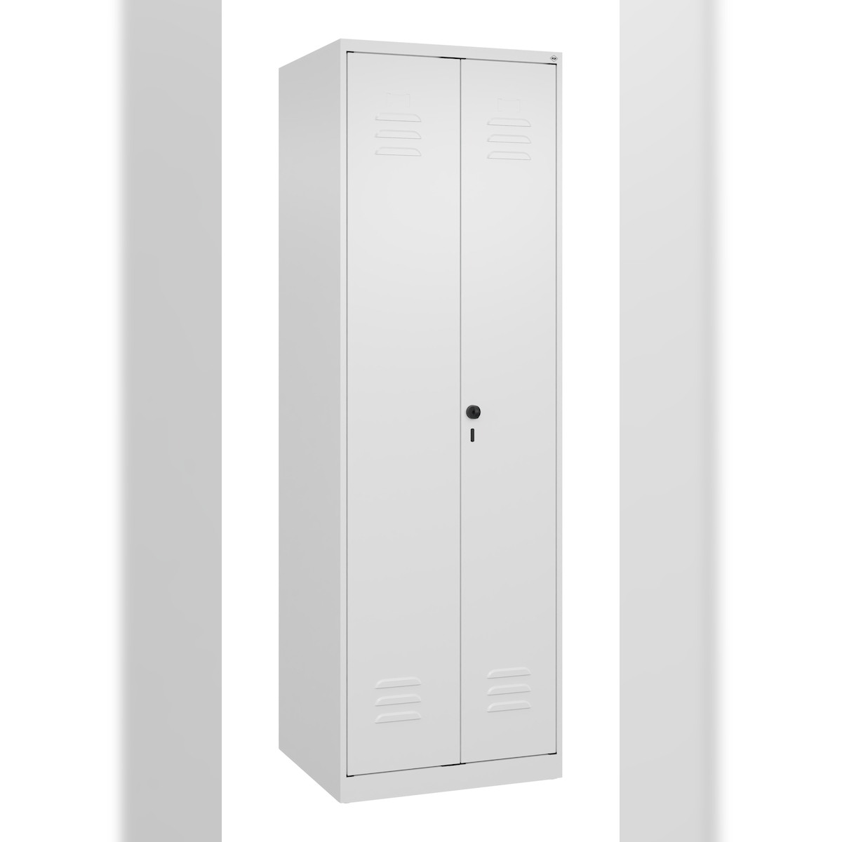 Putzmittelspind Classic PLUS, 1 Abteil, Trennwand mittig, lichtgrau, B 800 mm, mit Bodensockel, Zylinderschloss C+P