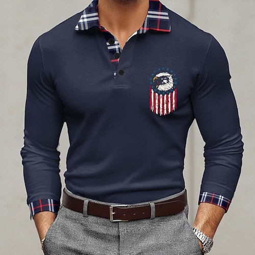 Giorno dell'Indipendenza Americana Per uomo Bandiera Americana Polo Manica Corta Magliette polo Camicie con Colletto Casual Athleisure Abito da festa Bottoni Estate Blu