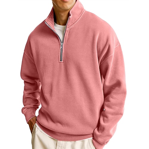 Per uomo Felpa con cappuccio Maglia Maglione Felpa con zip corta Blu denim Nero Giallo Verde chiaro Rosa Colletto Mao Mezza zip Semplice Cerniera Sport Outdoor Casuale Quotidiano Streetwear Cool