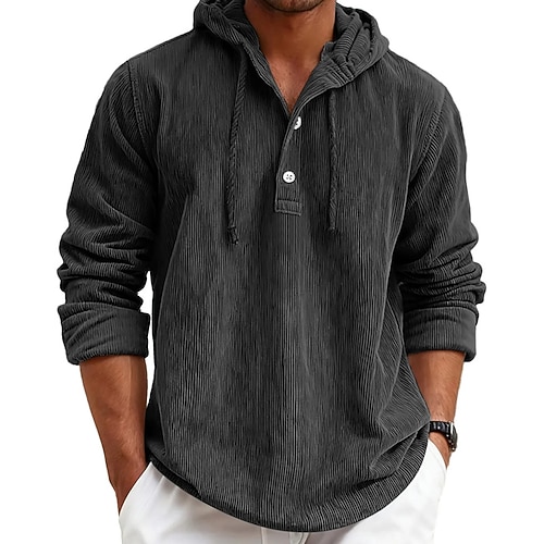 Per uomo Maglia Velluto a coste Felpa in pile Maglione Felpa con cappuccio abbottonata Blu Aalbicocca Nero Verde militare Blu marino Colletto Mao Semplice Patchwork Testurizzato Sport Outdoor