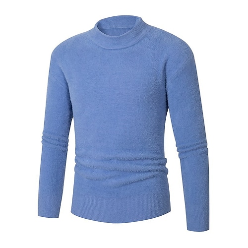 Per uomo Felpa Maglione di lana Maglione A Coste Maglia Top Regolari Lavorato a maglia Semplice Girocollo Moda Streetwear Casuale Abbigliamento quotidiano Abbigliamento Autunno Inverno Blu Cammello S