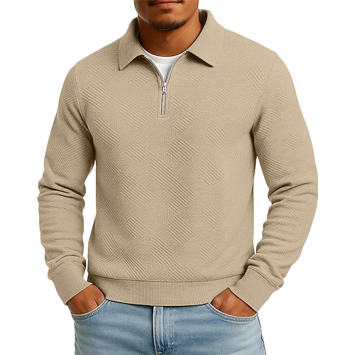 Per uomo Jacquard Maglia Maglione Felpa con zip corta Nero Bianco Blu marino Cachi Grigio Bavero Semplice Testurizzato Casuale Quotidiano Sport Outdoor Streetwear Cool Abbigliamento Sportivo