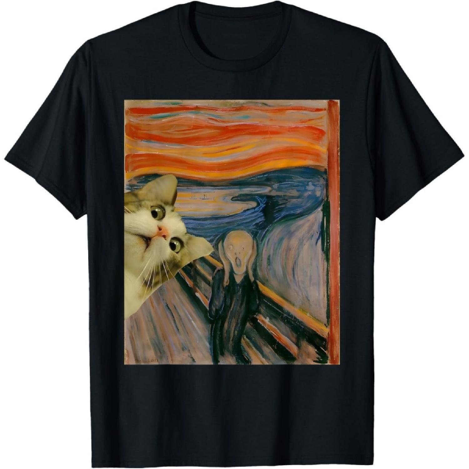 Der Schrei Katze Von Munch Edvard Berühmtes Gemälde Lustige Katzenkunst T-Shirt cm