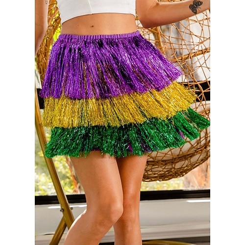 Gonna da Donna Carnival A Line Moda Casual Mini Vita Alta Gonne Blocchi di Colore Frange Inelastiche Daily Festa Viola Primavera Poliestere