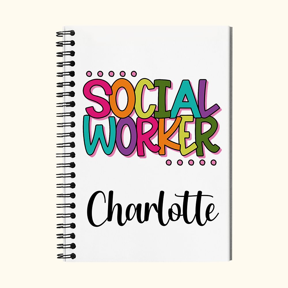 Taccuino a spirale personalizzato colorato per assistenti sociali A5 con nome Compleanno Regalo d'ufficio per lavoratori