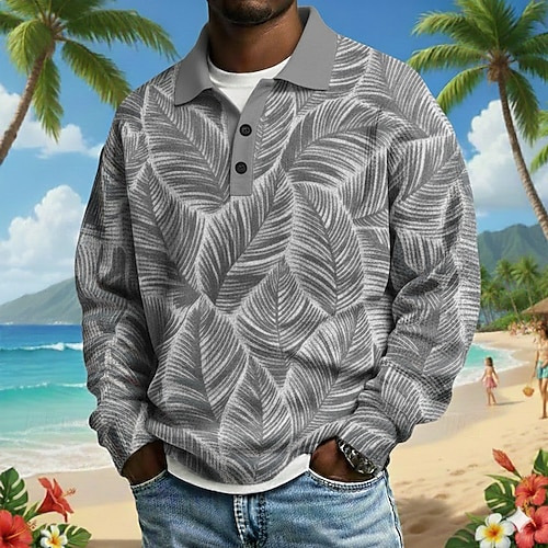 Per uomo Foglia Magliette Polo a Nido d'Ape Manica Lunga Magliette polo Bavero Resort Athleisure Camicia hawaiana Abbigliamento quotidiano Stampa 3D Primavera Autunno Inverno Blu Giallo Rosa