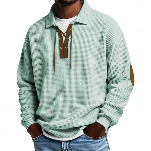 Per uomo Magliette Polo a Nido d'Ape Polo Casuale Streetwear Bavero Manica Lunga Essenziale Moderno Semplice Allacciato Primavera Autunno Vestibilità regolare Nero Bianco Verde chiaro Vino Blu marino