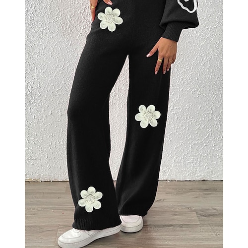 Per donna Gamba larga Pantaloni Eleganti Streetwear Casual Lunghezza intera Naturale Fiore Elastico in vita Stampa Morbido Streetwear Ferie Weekend Vinaccia Nero Caffè Inverno Vestibilità regolare