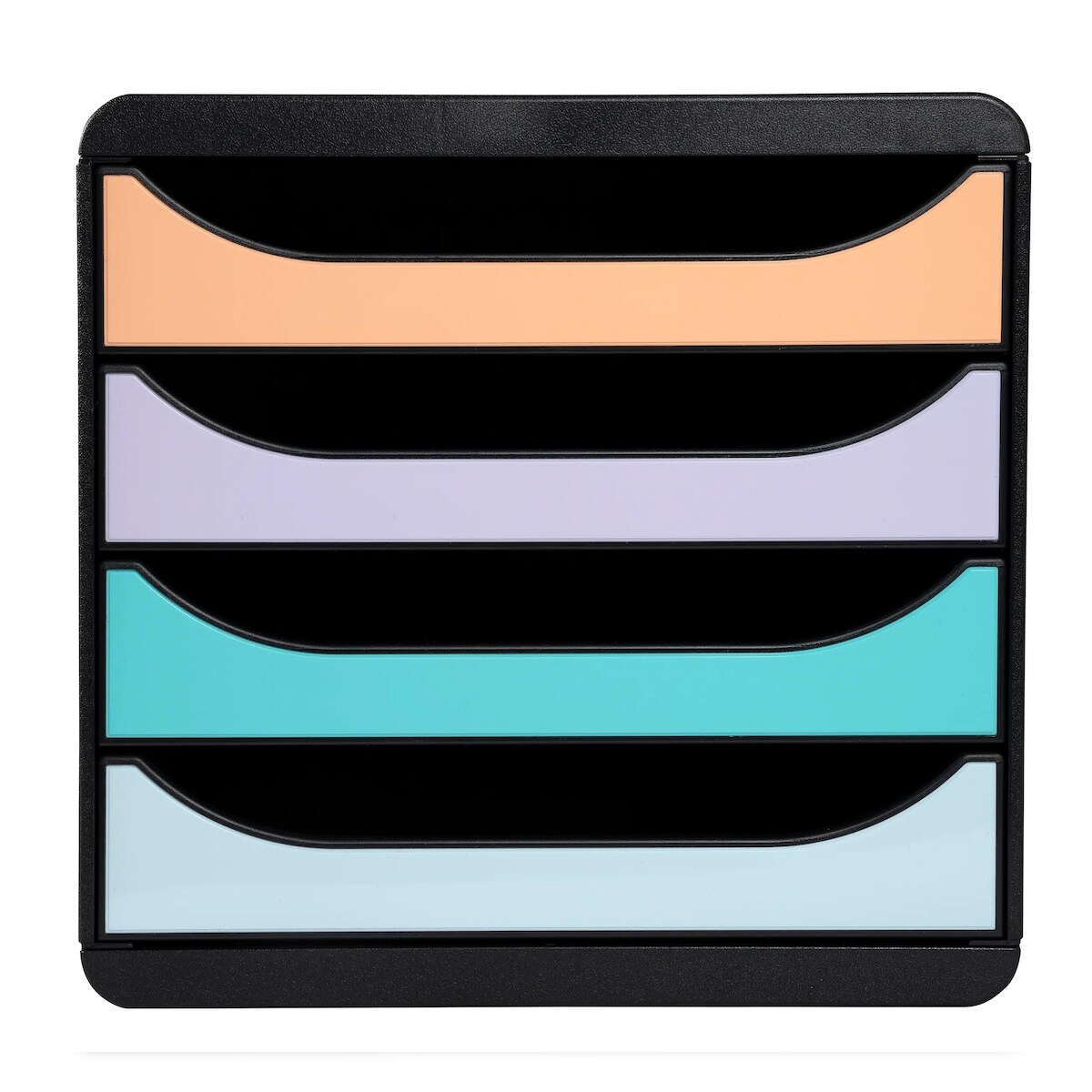 Exacompta 3104296D Schubladenbox Big Box Plus, 4 offene Schubladen, Aquarel - Farben sortiert