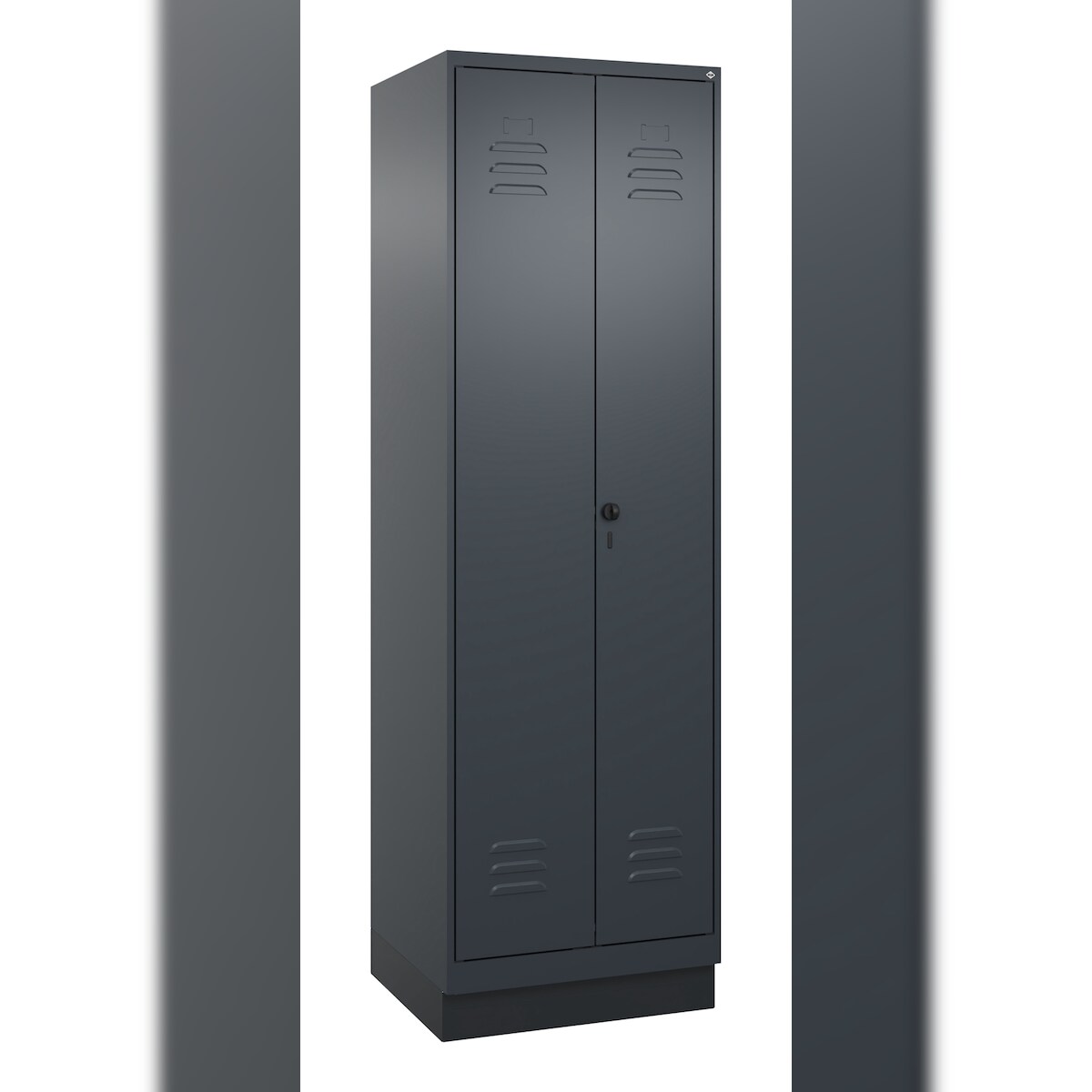 C+P Aufbewahrungs Doppel-Spind Classic PLUS, Sockel, 2 Abteile je 4 Fachböden, HxBxT 195x60x50cm, Sicherheitsdrehriegel, Anthrazit von PROREGAL