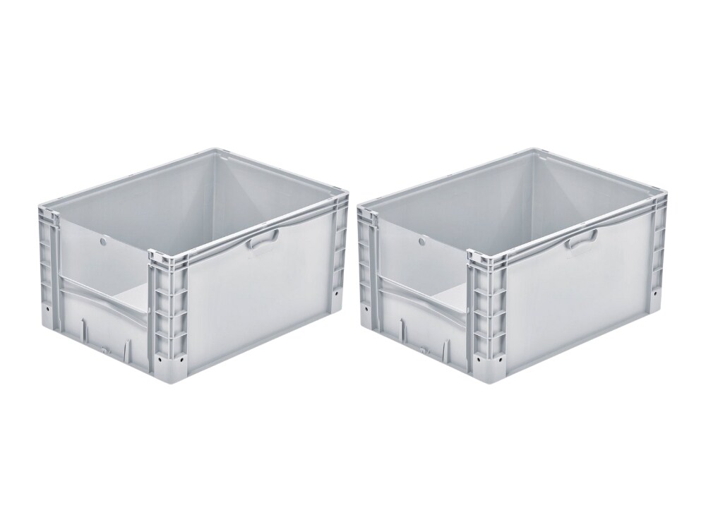 PROREGAL 2x Euro-Norm Großbehälter Insight Cover | HxBxT 42x60x80cm | 168 Liter | Grau | Eurobehälter, Transportbox, Transportbehälter