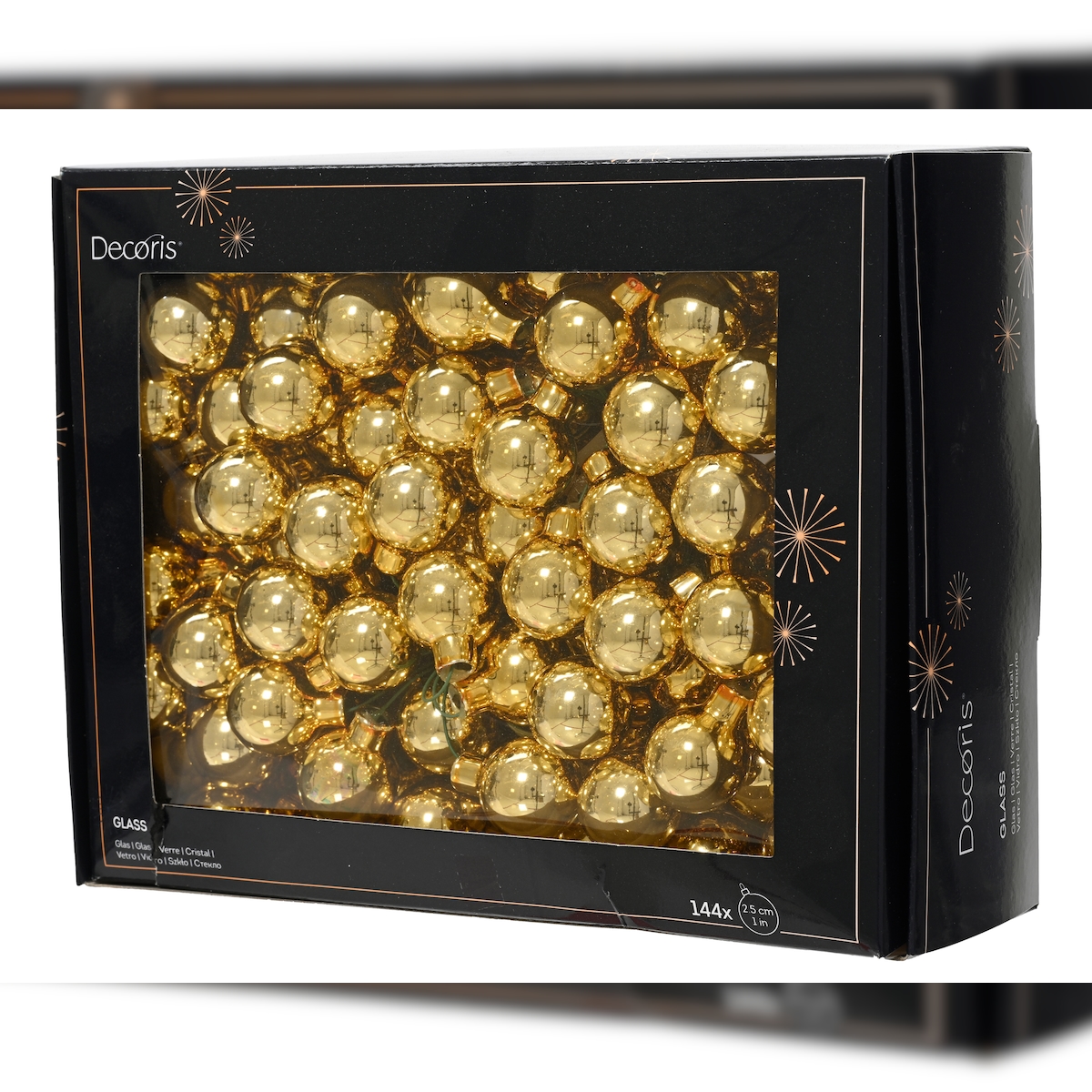 144 Glaskugeln am Draht 2,5cm Weihnachtskugeln Spiegelbeeren zum Basteln gold