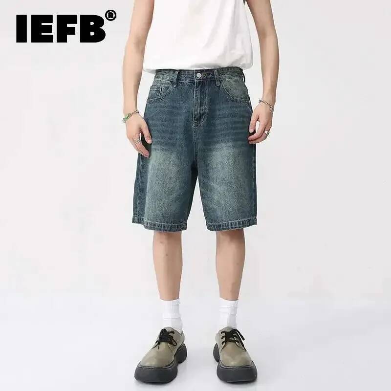 BeatStreet Summer Denim Shorts Men's Loose Korean Style Retro Short Jeans Fashion Washed Casual Knee Length Pant N cm light grey