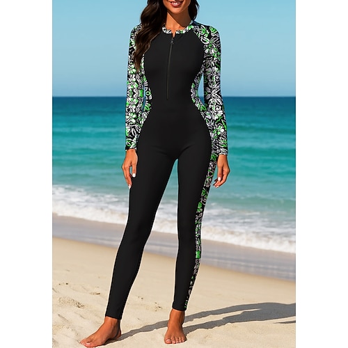 Per donna Costume da Bagno Rash Guard Floreale Protezione Solare UV UPF50 Asciugatura Rapida Manica Lunga Body costume da bagno Cerniera Frontale Surf Spiaggia Sport Acquatici Estate