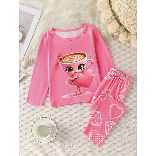 San Valentino Da ragazza 3D Con cuori T-shirt Camicie Rosa Manica lunga Stampa 3D Autunno Inverno Attivo Di tendenza stile sveglio Poliestere Bambino 3-12 anni Girocollo Esterno Informale Giornaliero