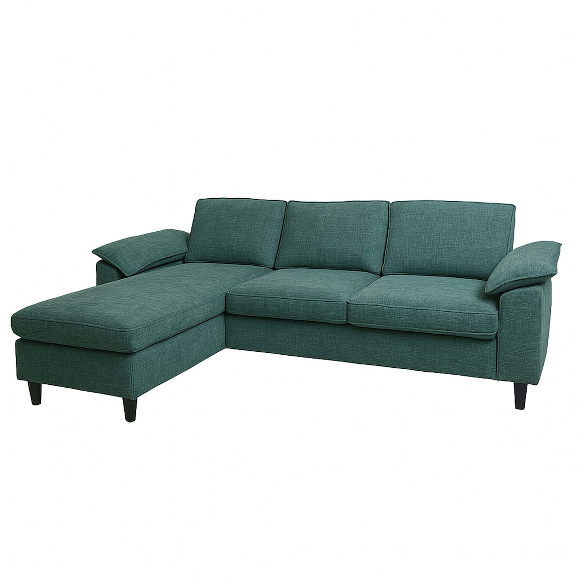 Mendler Sofa-Garnitur HWC-O71, Couch Ecksofa L-Form, Liegefläche links/rechts, Stoff (320 g/m²) Holz 84x229x140cm ~ grau-grün