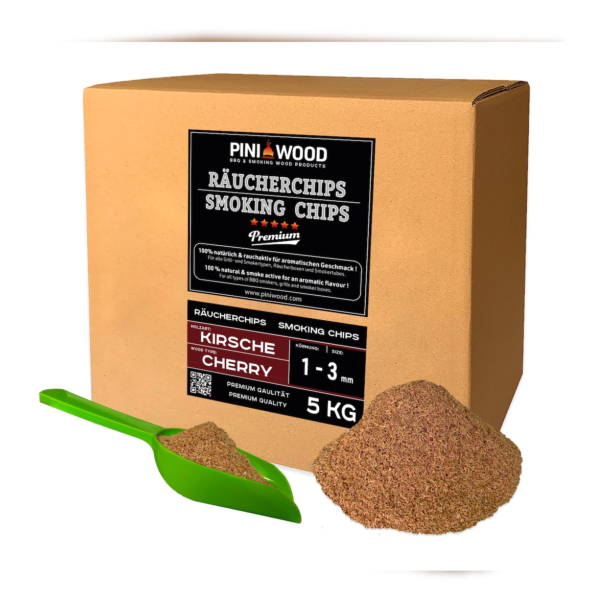 PINI 5 kg Räucherchips Kirsche 1-3 mm Smoking Chips Räucherspäne