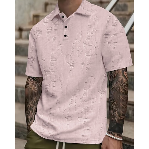 Per uomo Polo Maglia da golf Casuale Streetwear Bavero Manica Corta Essenziale Moderno Semplice Bottoni Strappato Estate Primavera Vestibilità regolare Nero Bianco Giallo Rosa Cachi Grigio Polo
