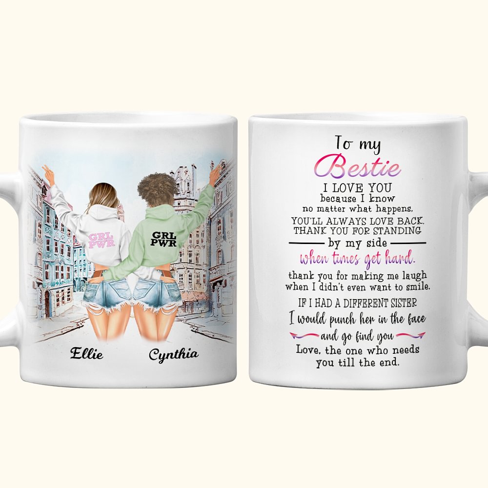 Taza de cerámica blanca personalizada I Love You My Bestie You'll Always Love Back By My Side When Times Get Hard Birthday Graduation Gift for Bestie