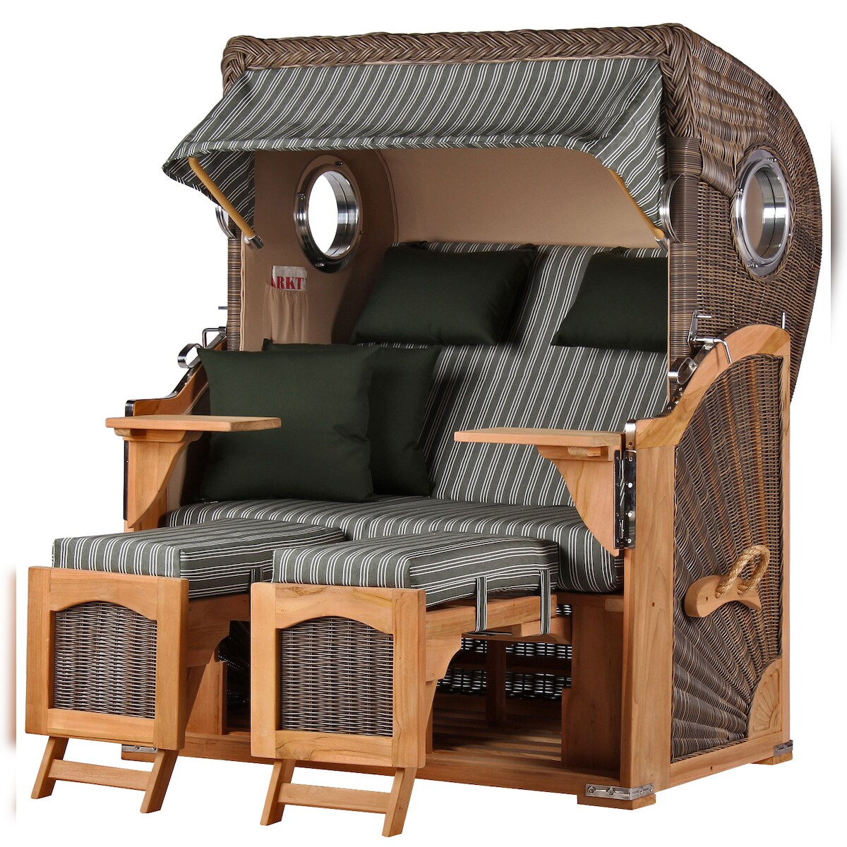 Mr. Deko Strandkorb - bene living - Ammersee Teak Bullauge - PE grau - Modell 504 - Zweisitzer inkl. Liftersystem