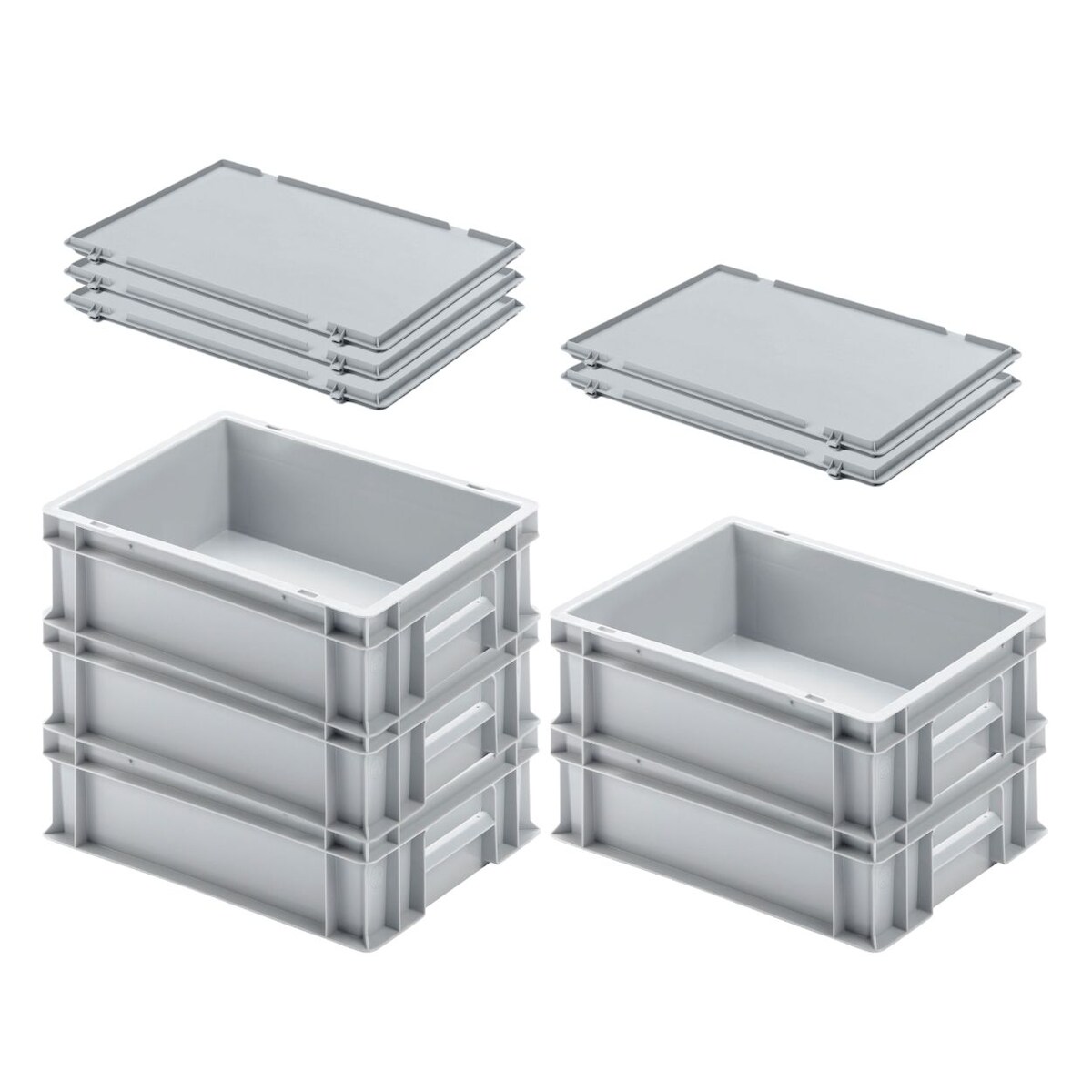 PROREGAL 5x Eurobehälter mit geschlossenem Griff und Scharnierdeckel | HxBxT 12x30x40cm | 11 Liter | Grau | Eurobox
