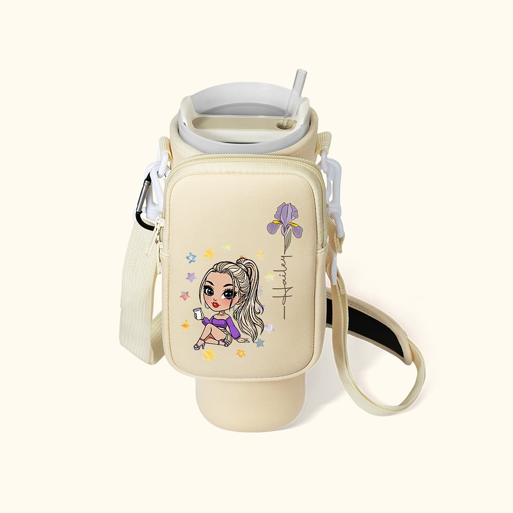 Personalizzato Cartoon personaggio nascita fiore bottiglia d'acqua borsa per 40 oz Tumbler con nome e rimovibile sacchetto regalo di compleanno per le donne