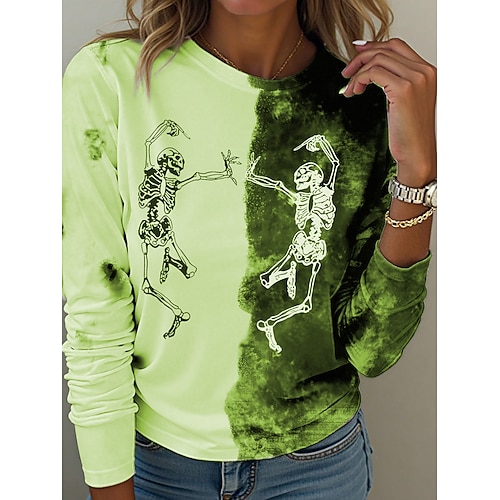 T Shirt da donna Teschi Grafica Moda Vintage Causale Manica Lunga Collo Girotondo Magliette Regolari Giorno del Weekend Stampa Rossa Blu Viola Verde Grigio Autunno Inverno