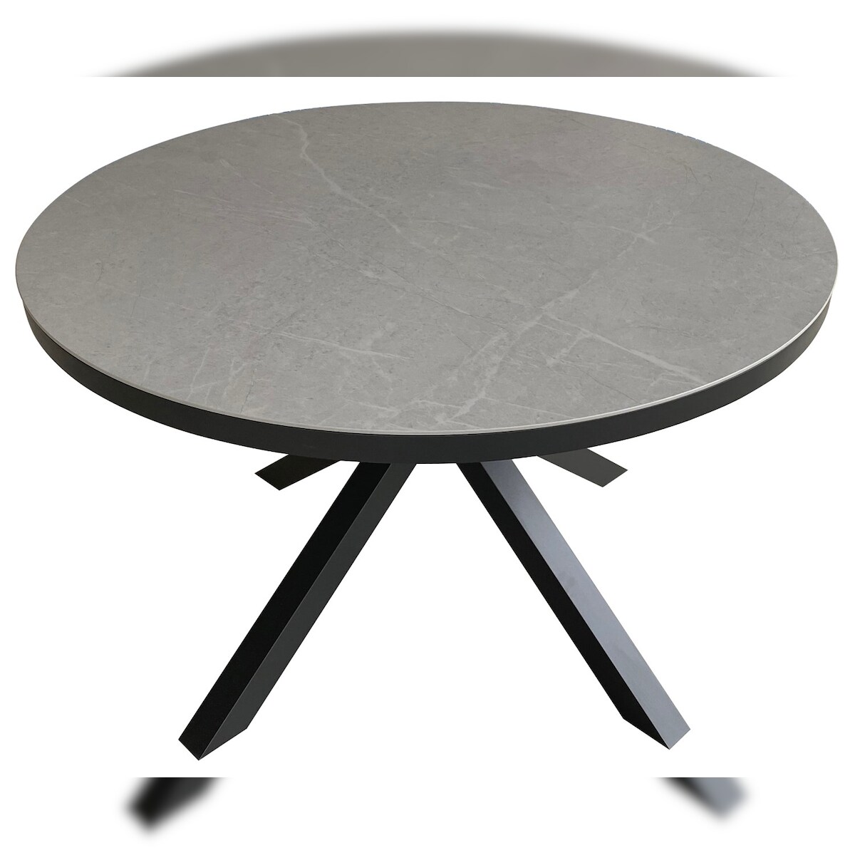 Mr. Deko Tisch Almeria - 120 cm rund - gesinterter Stein hellgrau - Gestell Kreuz-Form