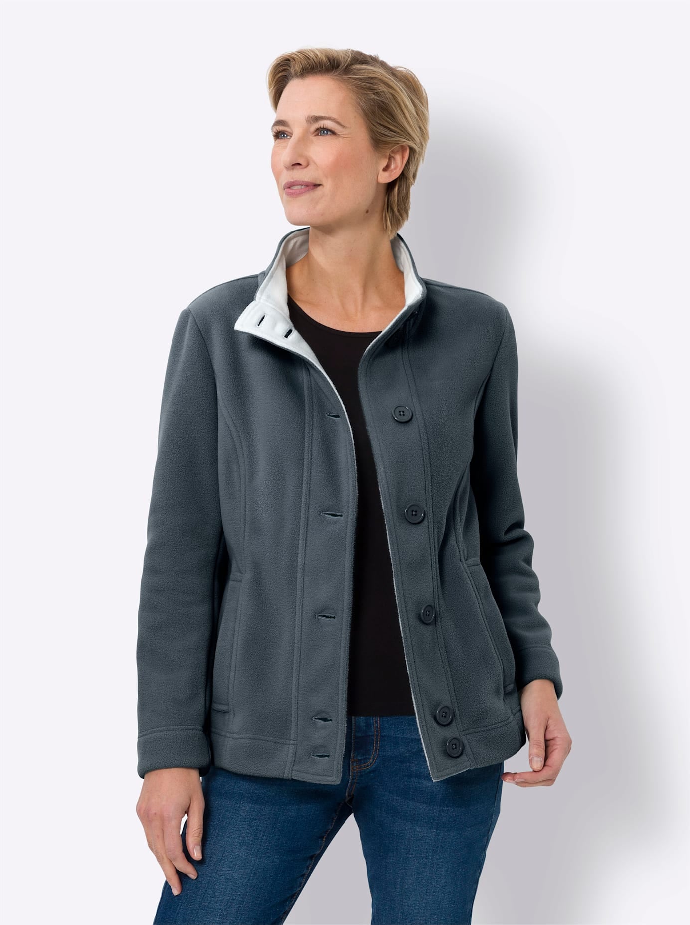 Langjacke CLASSIC BASICS, Damen, Gr. 50, blau (jeansblau), 100% Polyester, Langarm, Jacken