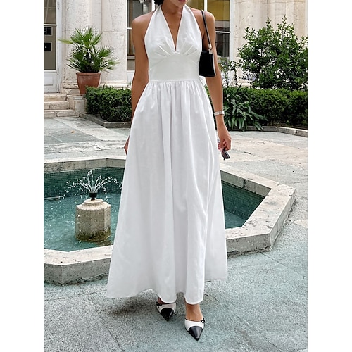Per donna Abito Midi Abito nero Abito da Cocktail Abito Formale Abito Semplice Casual Streetwear Data Vestibilità regolare Semplice Senza Maniche Girocollo Blu Nero Bianco Albicocca Estate Primavera