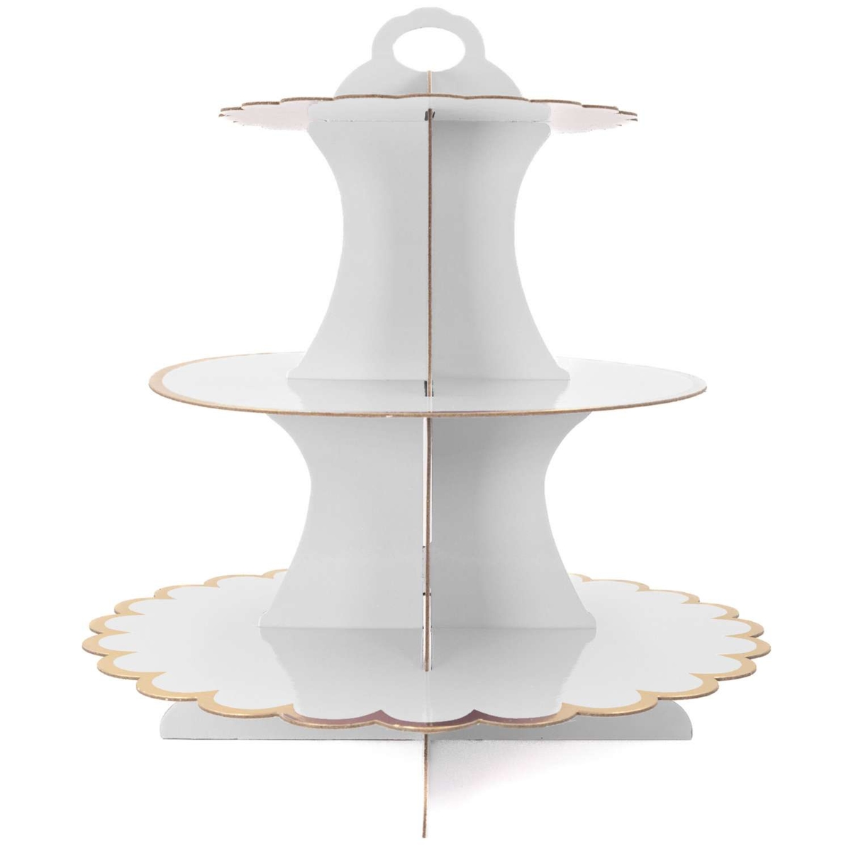 Intirilife Etagere aus Karton mit 3 Ebenen in Weiß - 30 / 24.5 / 18.5 x 33 cm - Tortenständer aus Pappe, Muffinständer Cupcake Ständer