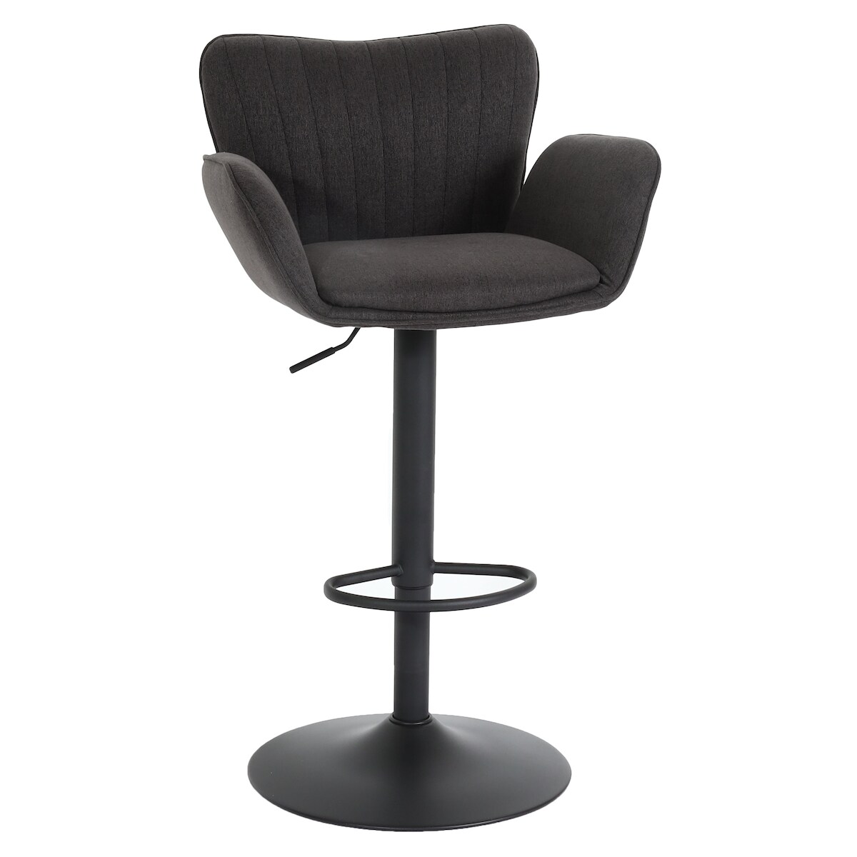 Proregal Barhocker gepolstert mit Lehne | Sitzhöhe 66-90cm | mit Armlehne Fußablage drehbar Stoff/Textil Eisen | Dunkelgrau Fuß Schwarz| Drehstuhl Barstuhl