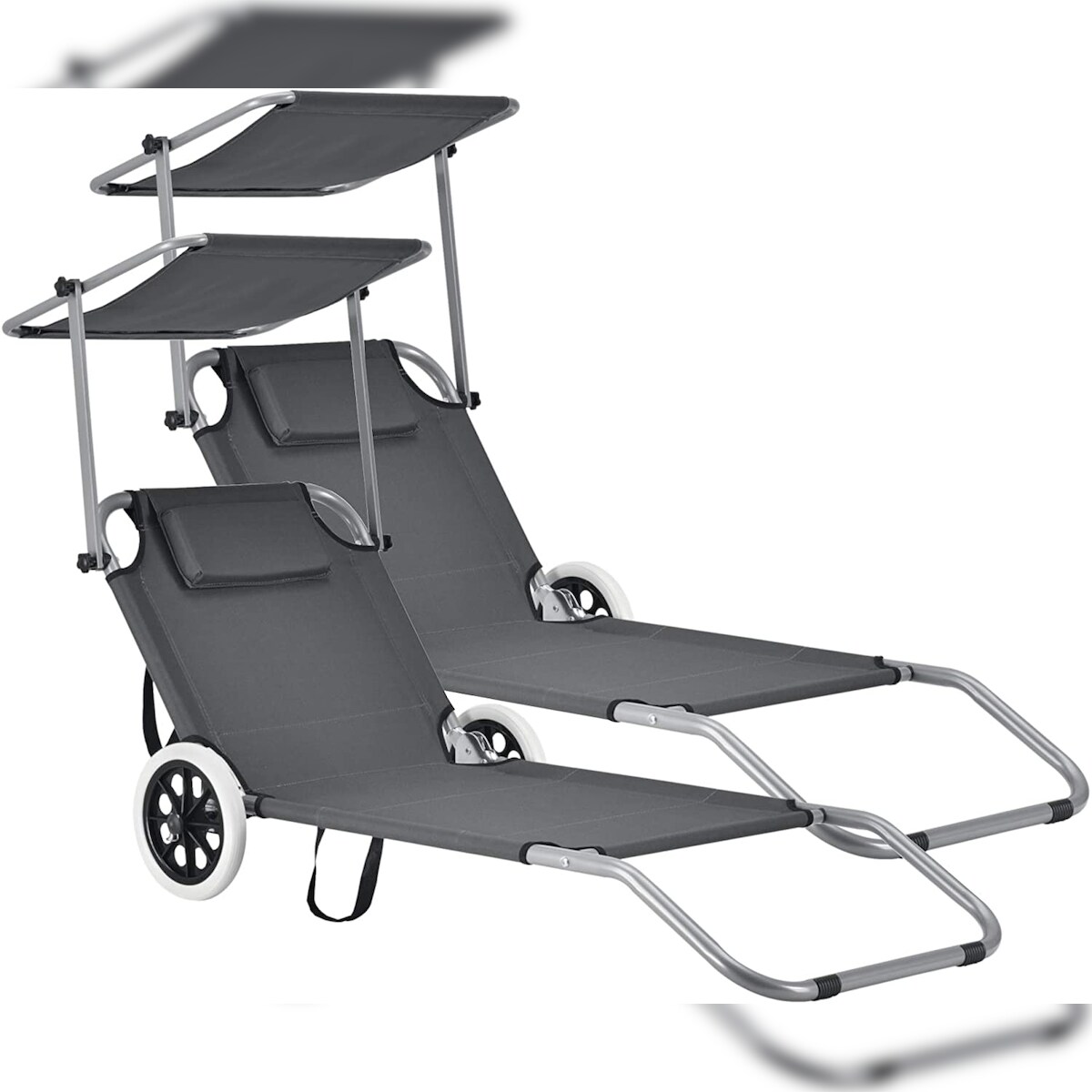 UAC Sonnenliege 2er Set mit Sonnendach und Rollen, Verstellbar, belastbar bis ca. 110 kg, Gartenliege Strandliege Liegestuhl, Anthrazitgrau 044W1_W