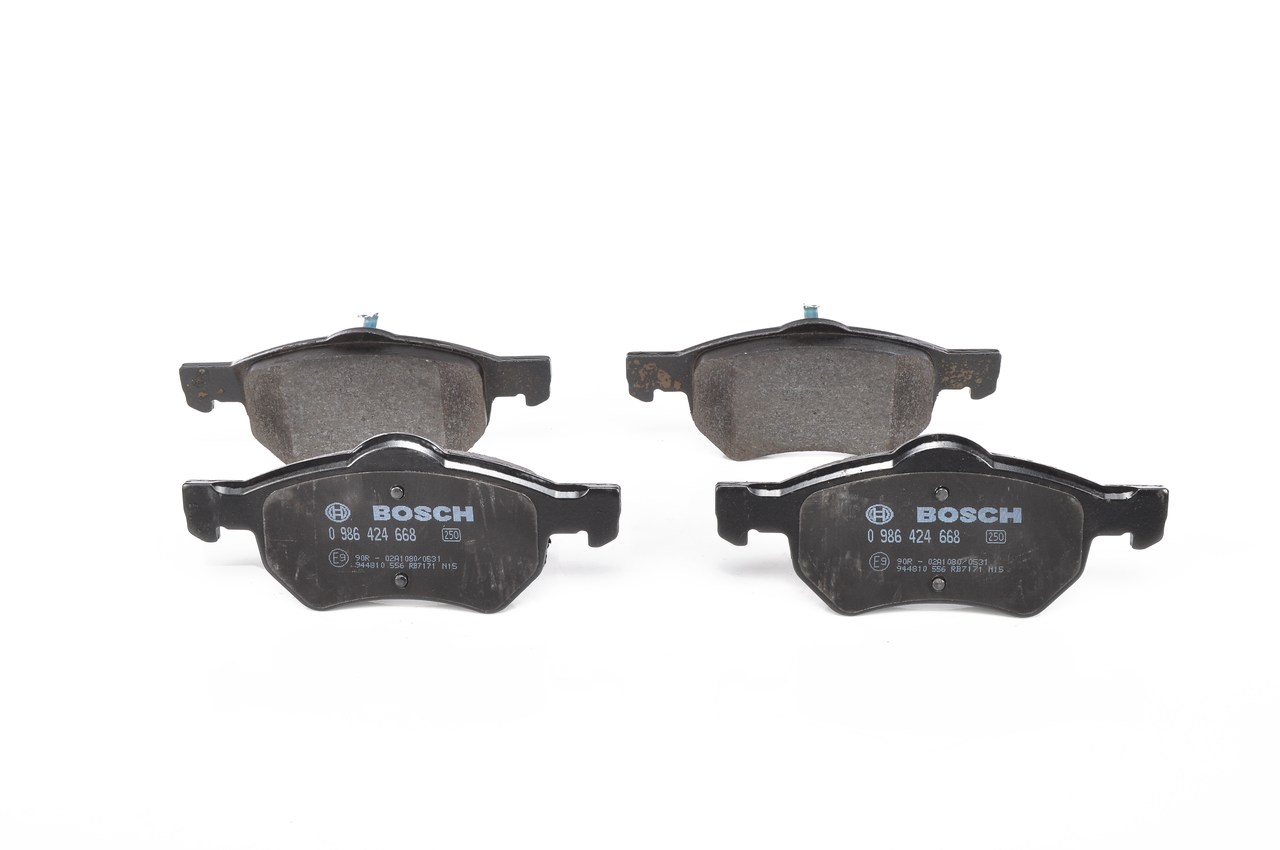 BOSCH Bremsbelagsatz, Scheibenbremse 0 986 424 668 vorne rechts links mit Feder für DODGE FIAT CHRYSLER 05015365AA 5015365AA 77363604