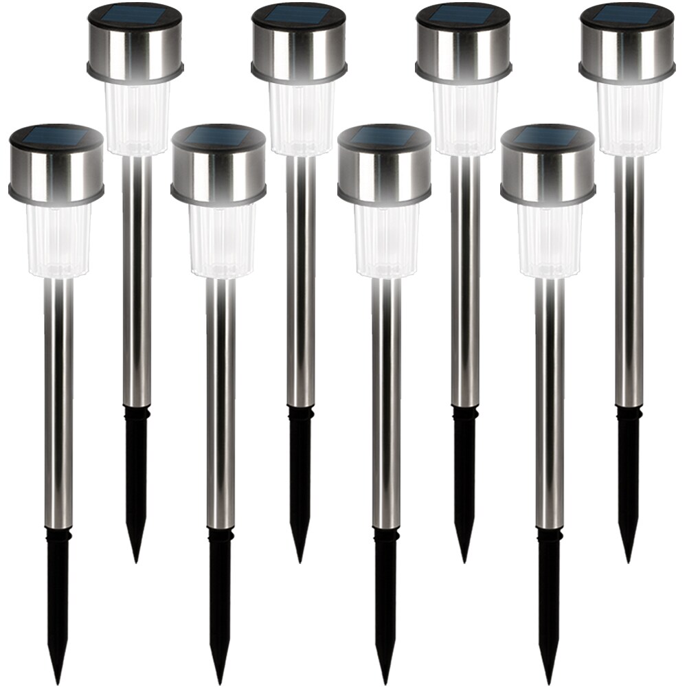 MONZANA® LED Solarlampe Außen 8er Set Wetterfest IP44 Solar Sensor Erdspieß Edelstahl Wegeleuchte Solarleuchte Garten