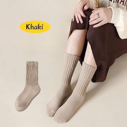 calzini lunghi da donna, morbidi, bianchi, imbottiti, arricciati, spessi, lunghi, in maglia, da strada, alla moda, autunnali, invernali, casual, sportivi, comodi e caldi, per le donne