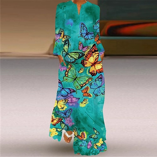 Per donna Abito Midi Abito nero Vestito Casual Elegante Moda Moderno Quotidiano All'aperto Uscire Vestibilità regolare Floreale Grafico Manica Lunga Girocollo Blu Bianco e nero Perle Nero Primavera
