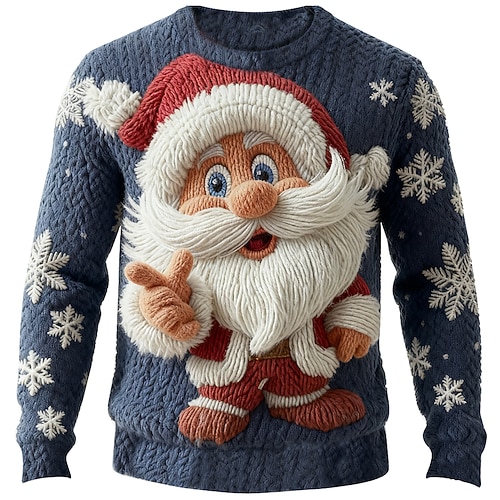 Maglione di Natale brutto Per uomo Babbo Natale Stampa Maglione Maglieria Girocollo Casual Vacanza Quotidiano Festival Tenere al caldo Manica Lunga Primavera Autunno Inverno Nero A Nero B Nero