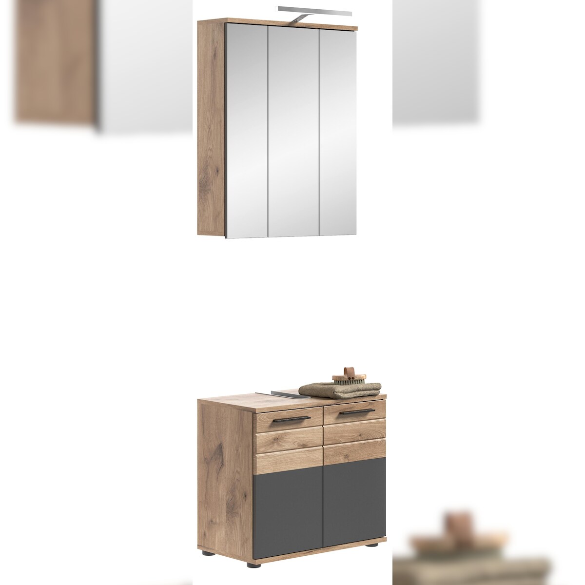 Ebuy24 Mason Badmöbelset M5 Inkl. Beleuchtung Grau, Eiche Dekor.