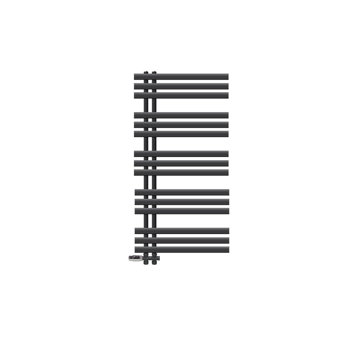 LuxeBath Badheizkörper Iron EM 600×1200 mm Anthrazit, Seitenanschluss, Thermostat Durchgang-Boden, Design Heizkörper Handtuchwärmer