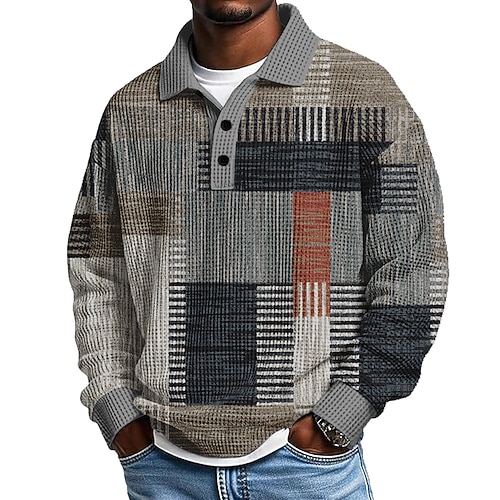 Per uomo Strisce orizzontali Magliette Polo a Nido d'Ape Polo da rugby Manica Lunga Magliette polo Bavero Abbigliamento Sportivo Casual Scuola Athleisure Abbigliamento quotidiano Stampa 3D Primavera
