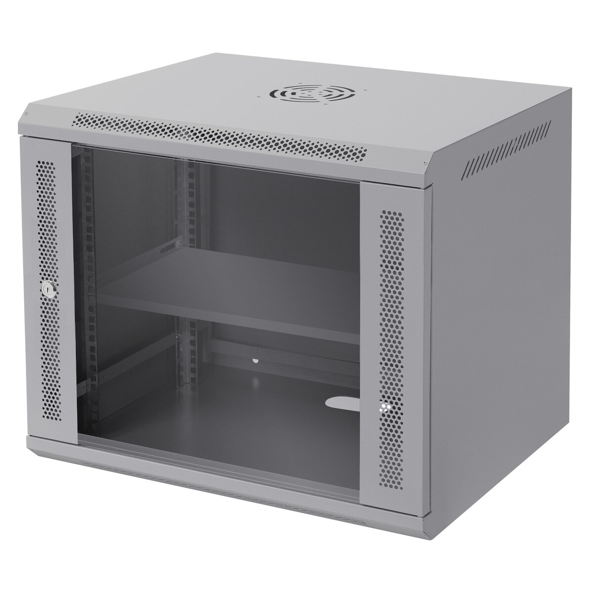 ECD Germany Netzwerkschrank 9 HE, 19 Zoll, 600x500x450 mm, Wandmontage, abschließbare Glastür, Traglast 60 kg