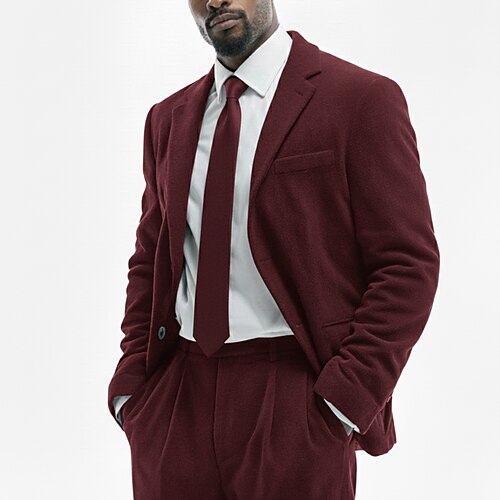 Uomo Matrimonio Affari Completi in Tweed Bavero classico Nero Borgogna Affari Formale Tinta unita Vestibilità su misura 2 pezzi Monopetto a un bottone
